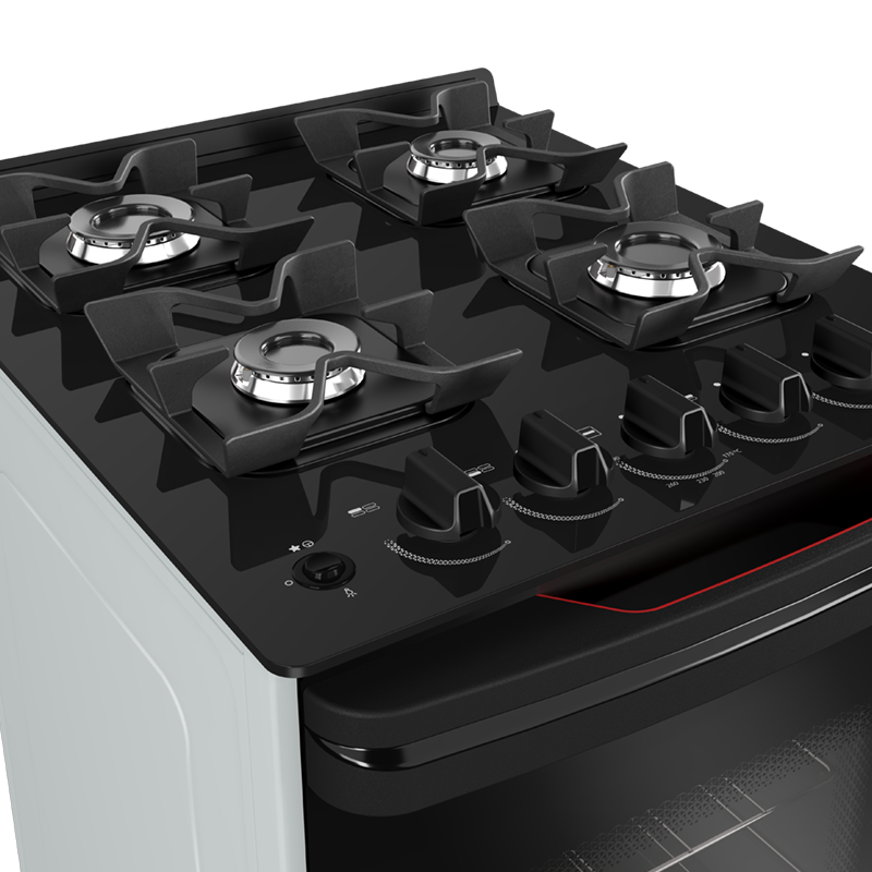 / Cocina Supergas 4 Hornallas Blanca, Mesada de Vidrio, Hierro Fundido y Termocupla – Brasil