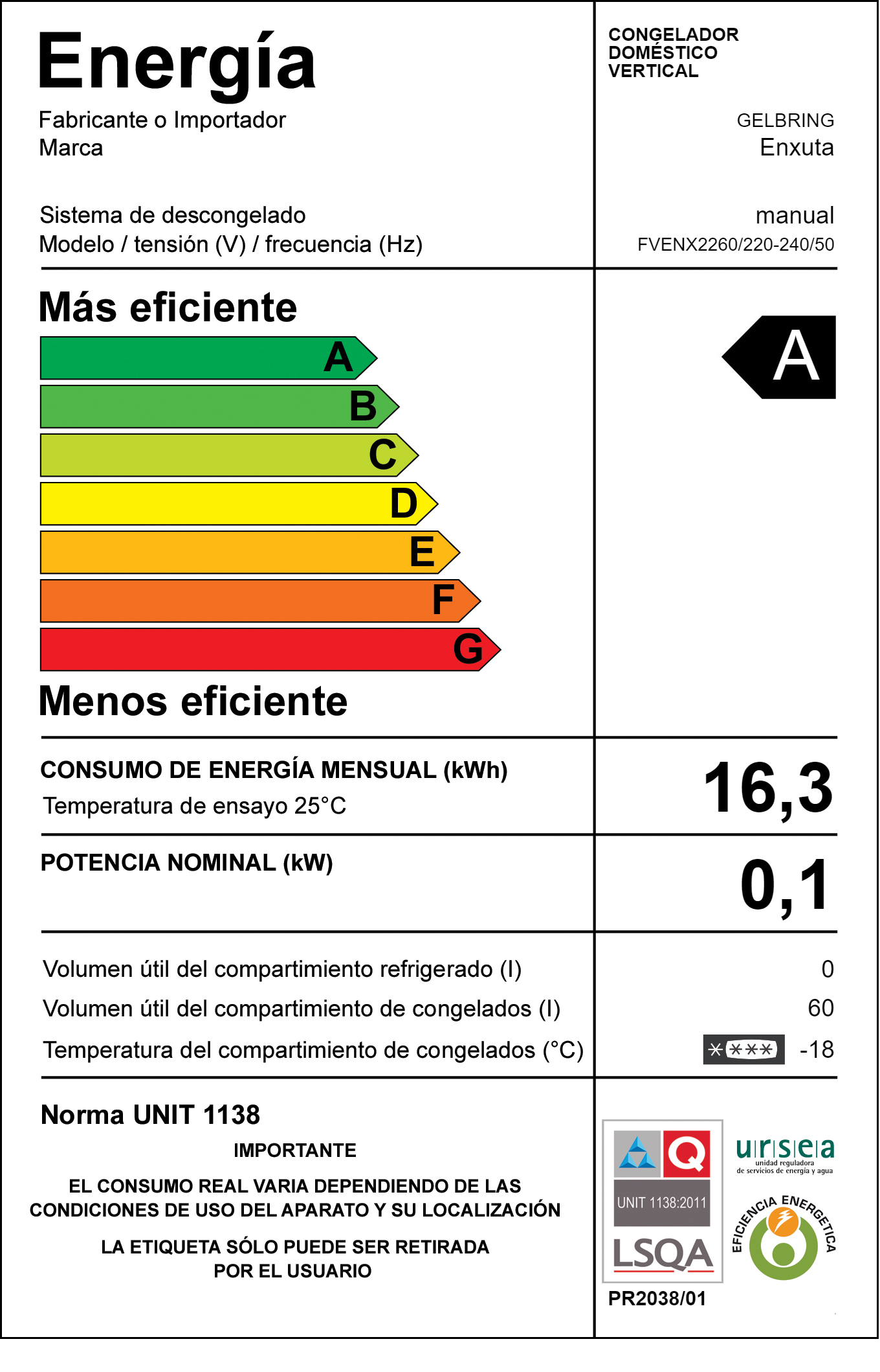 Freezer Vertical 60 Litros Blanco Frío Húmedo cantidad
