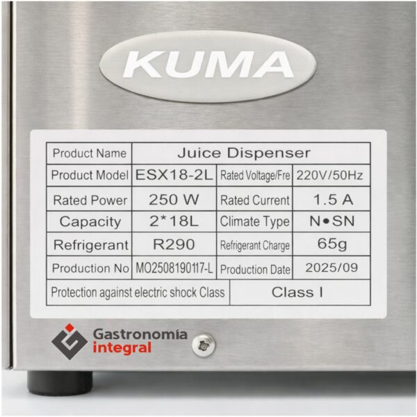 Kuma Dispensador de jugo 2 cubas 18lts ESX18-2L cantidad